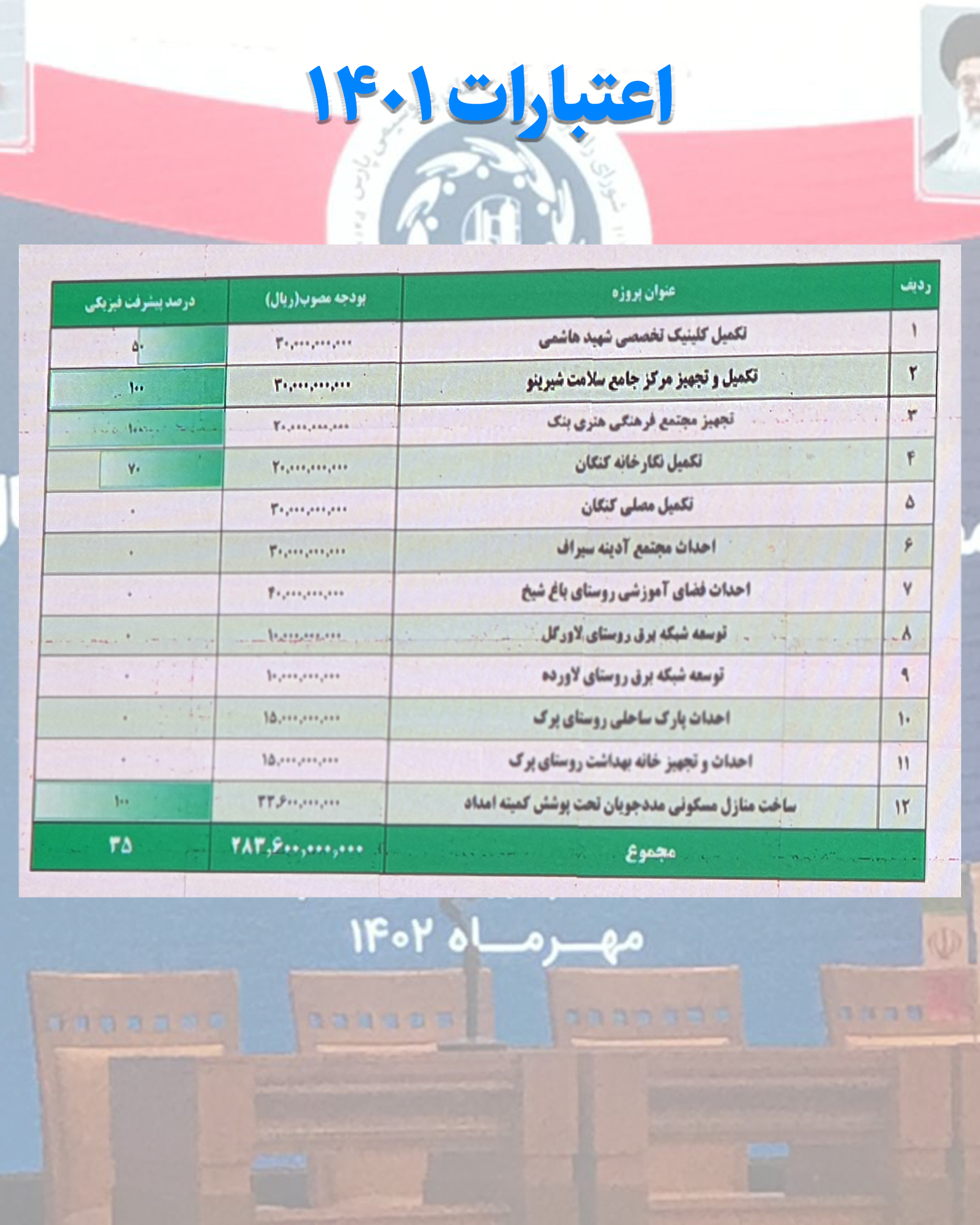 بهمنی افزود: در گذشته با پیگیری های که داشتیم ۳ میلیارد تومان برای تکمیل از محل اعتبارات شورای راهبردی پتروشیمی منطقه ویژه پارس گذاشته شده بود.